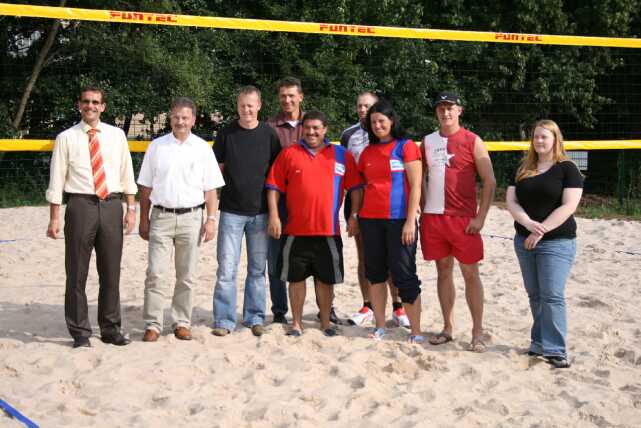 Am Donnerstag, 10.07.08 versammelte sich ein kleiner Kreis geladener Gäste zur offiziellen Eröffnung der neuen Beachvolleyballanlage im Freizeitbad Birstein: Neben Bürgermeister Wolfgang Gottlieb, dem Sportkreisvorsitzenden Carsten Ullrich und den Schwimmmeistern fanden sich Vereinsvertreter der Volleyballgemeinschaft Birstein, Alexander Prinz von der Gemeinde Birstein, die Schwimmeister Lilo Massaro und Daniela Steller sowie die Vertreter der örtlichen Presse ein, um die Übergabe des Beachfeldes an die VGB und das Schwimmbad zu begleiten.